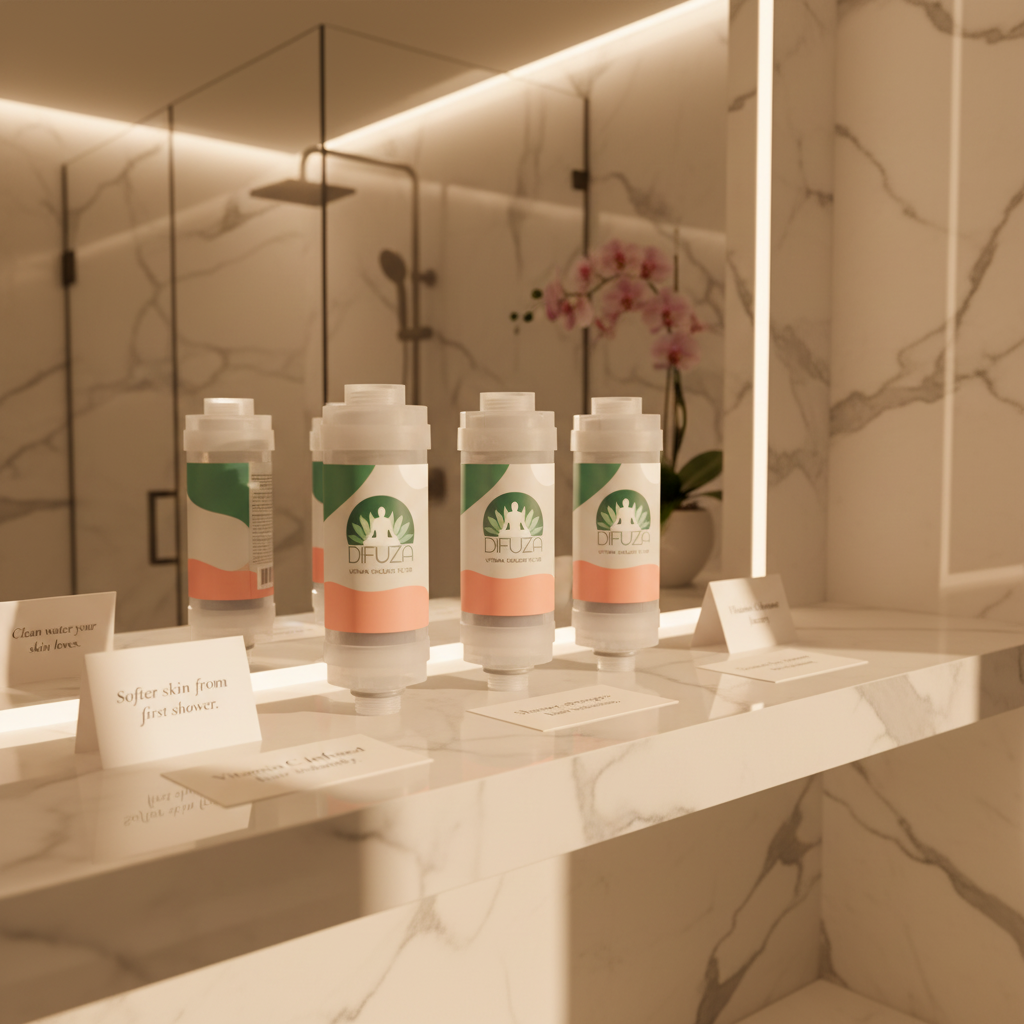 Transform your daily shower into a luxurious spa experience. DIFUZA's vitamin-infused shower filter brings wellness and beauty together, giving you visibly healthier skin and hair with every wash.